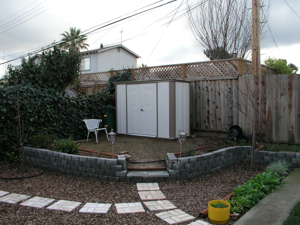 Когда мы купили дом в Сан Хосе, то в этом углу заднего двора был простой газон. Точнее простая лужайка – без специального ухода газон за несколько лет превращается в обычную лужайку с одуванчиками и прочими сорняками.